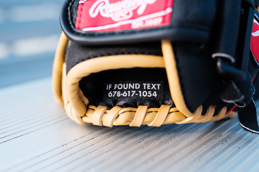 Baseball is expensive enough, use our "TEXT ME" labels on all your gear. You'll be glad you did. Inside your glove, on your bat, and inside your gear bag too, just in case.